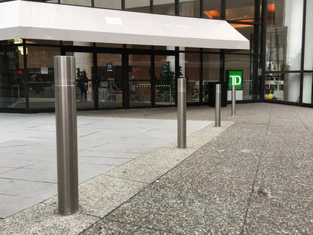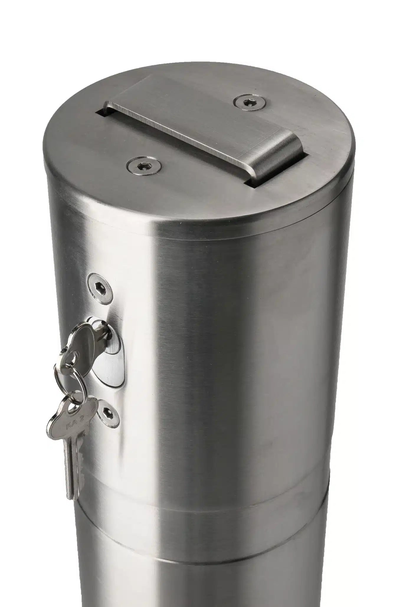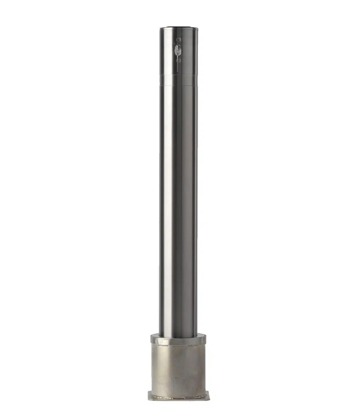 The R-8464 Stainless Steel Removable Bollard features internal locking hardware for quick and easy access to restricted areas. Elevated key-access avoids collection of dirt and debris in dusty, particle-filled environments. Its clean and versatile design is highly visible and available with alternative mountings (see retractable and fixed models) for consistent aesthetics that suit any modern building or landscape. High-quality 316 grade stainless steel with #6 satin finish features high resistance to corrosion and weathering. Posts ship standard with 1 of 4 colored reflector stripes and include mounting covers to prevent tripping hazards and collection of debris.